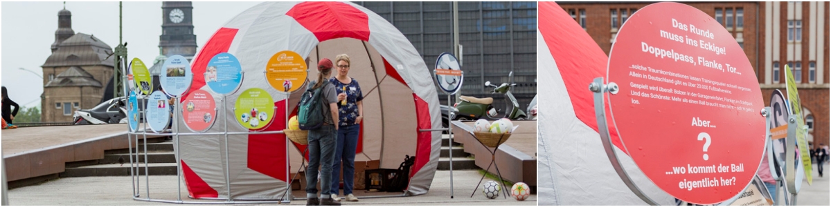 Das Zelt ist ca. 2,70 m hoch und benötigt ca. 5,00 m x 5,00 m Platz. Die Aufbauzeit beträgt ca. eine Stunde, dafür werden mindestens drei Personen benötigt. Zu dem Zelt gehören zwölf wetterfesten Infotafeln, die beidseitig bedruckt sind. Die Zelthaut kann auch mit einer Weltkugel – Meere blau, Kontinente grün – getauscht werden und ist dadurch universell nutzbar.